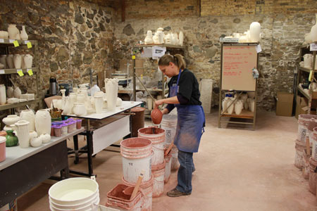 (3) Only residential uses are permitted within the first 100 feet of the curbline. The 100-foot restriction may be reduced to 80 feet if the nonresidential portion of the building facing St. Asaphs Road is wrapped with a residential use covering 75% of the building facade. Such uses may be either directly attached to the structure, or separated by an interior court or service lane.